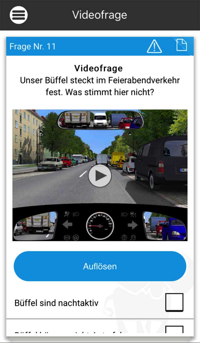 Videofragen sind im Grunde genommen Video-Files/Videodateien, die als Frage gestellt werden. Man sieht sich das Video an, vergrößert dieses gegebenenfalls und beantwortet entsprechend die Frage.